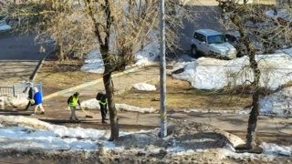 Вот где все уборщики. Уже неделю наблюдаю такую картину, приходят утром, накидывают снег на тротуар, потом сметают и фотографируют.