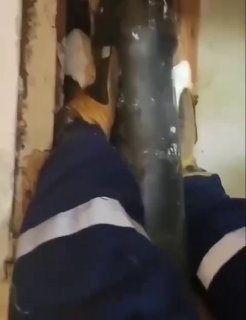 Огарь каким-то образом забрался в короб с трубой и застрял там. Сам выбраться не смог — пришлось вызывать спасателей.